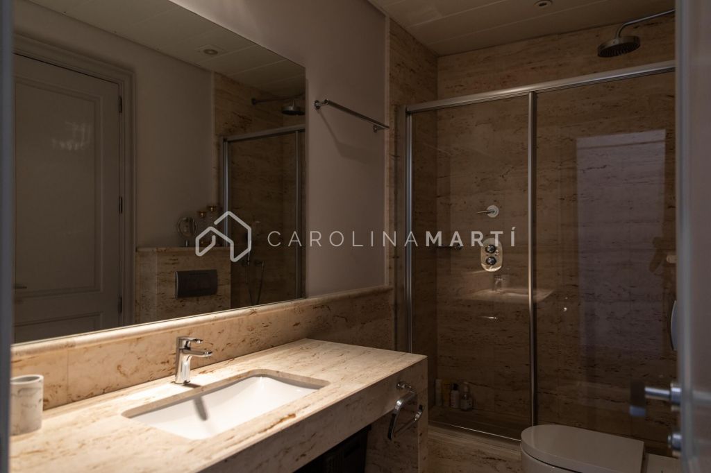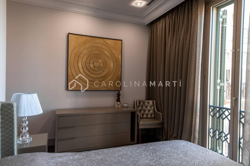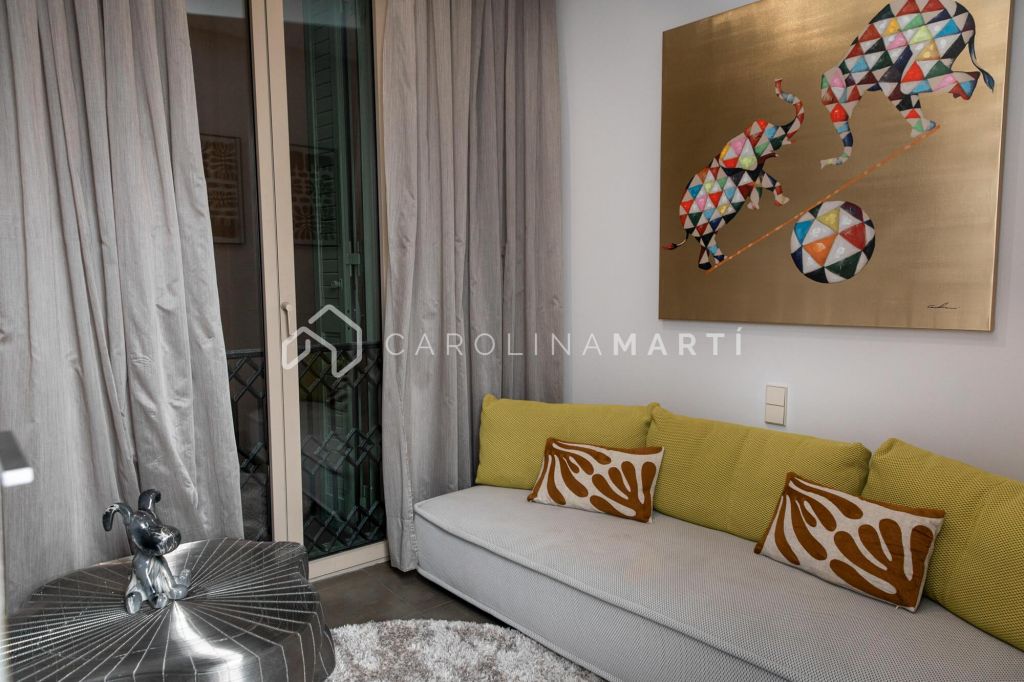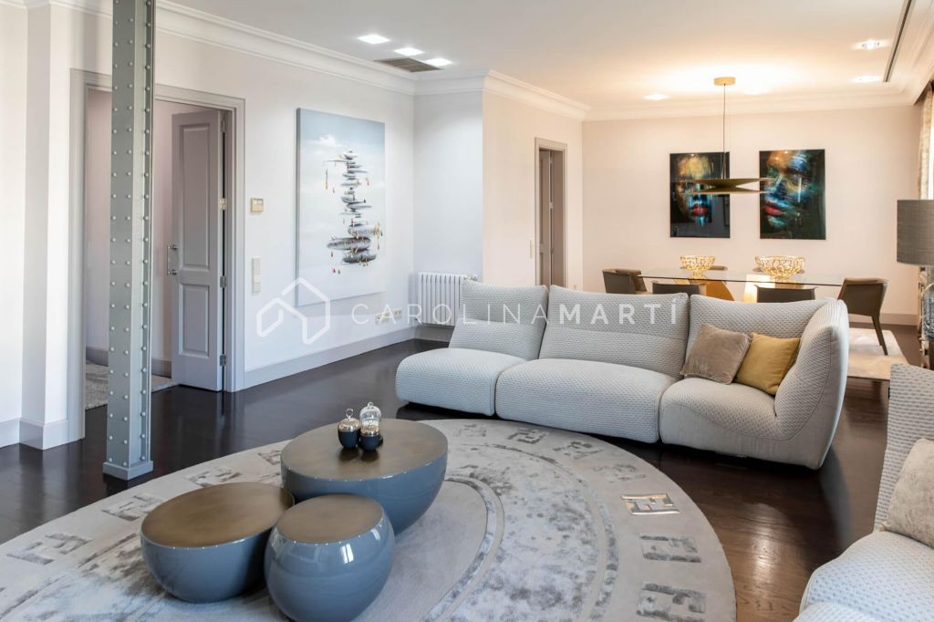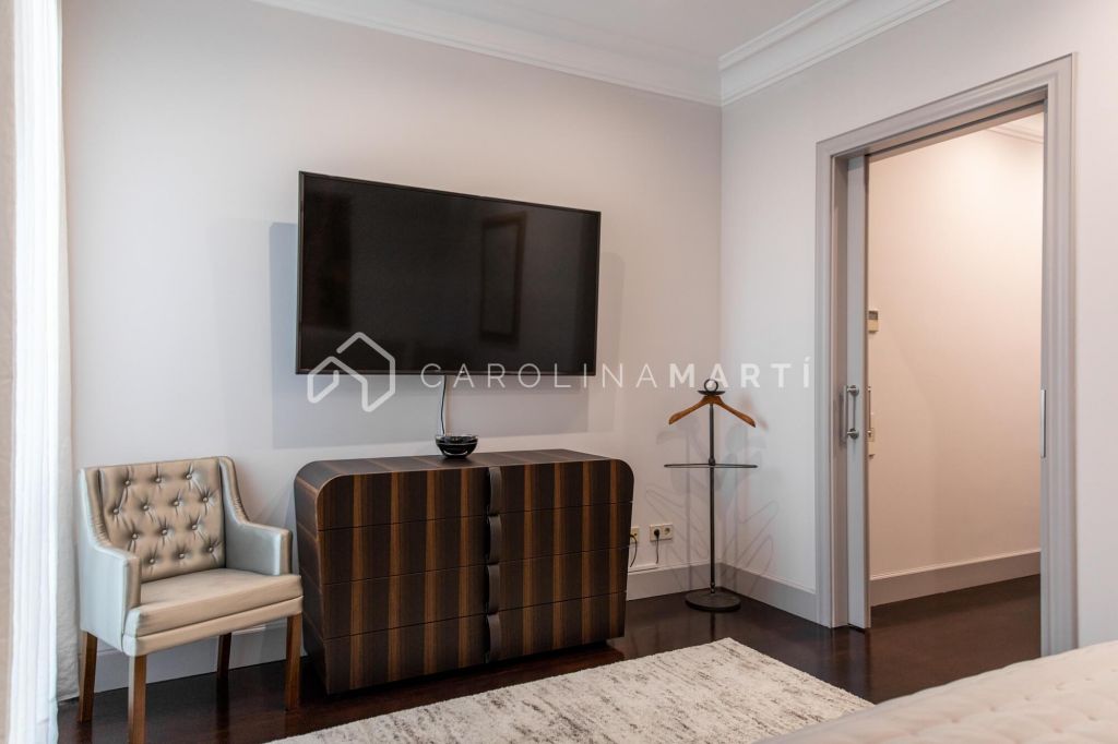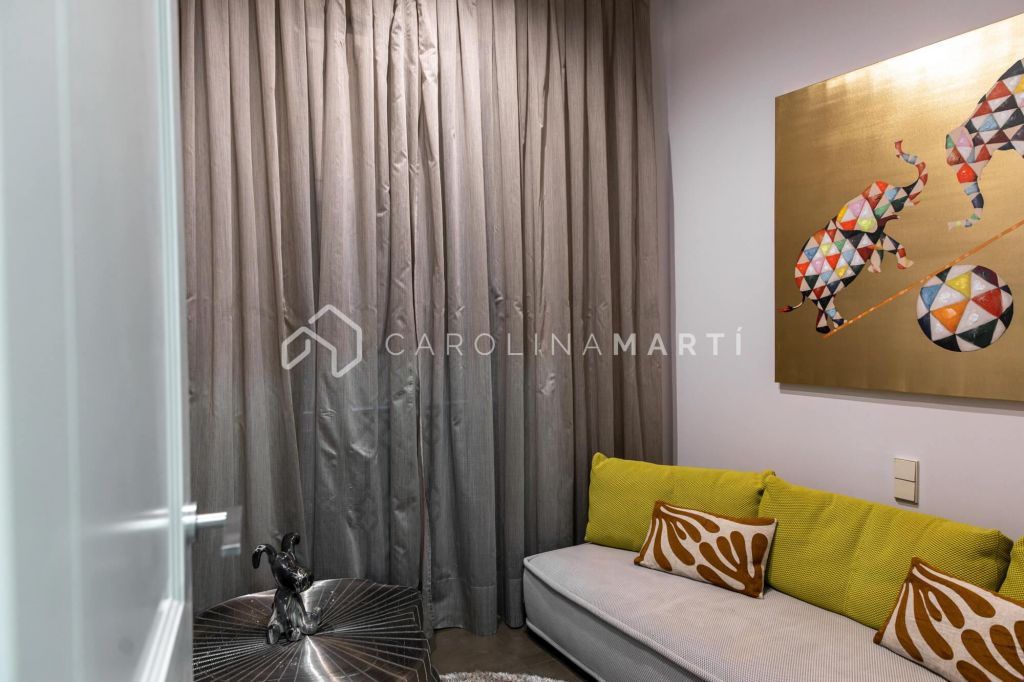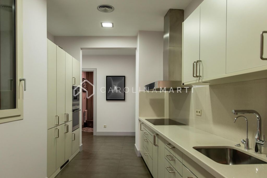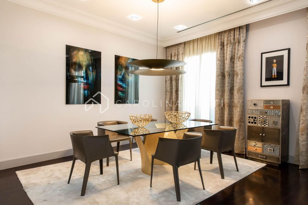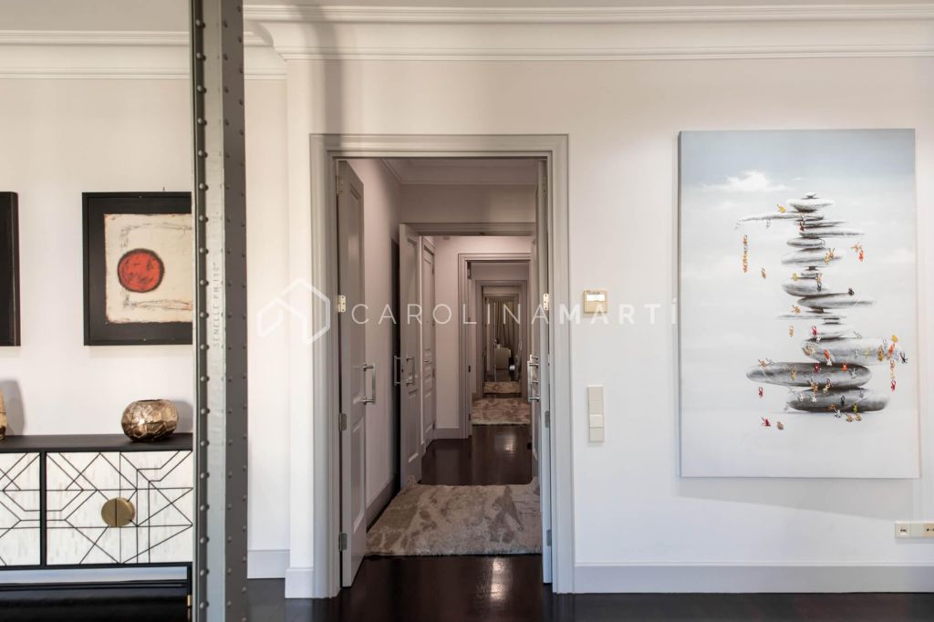 La zone de jour se distingue par un grand salon–salle à manger doté de grandes fenêtres laissant entrer une lumière naturelle abondante, tout en offrant une vue privilégiée sur la célèbre Casa Milà – La Pedrera, chef-d’œuvre de Gaudí. La propriété comprend également une cuisine indépendante entièrement équipée et une chambre de service avec salle de bain privée.