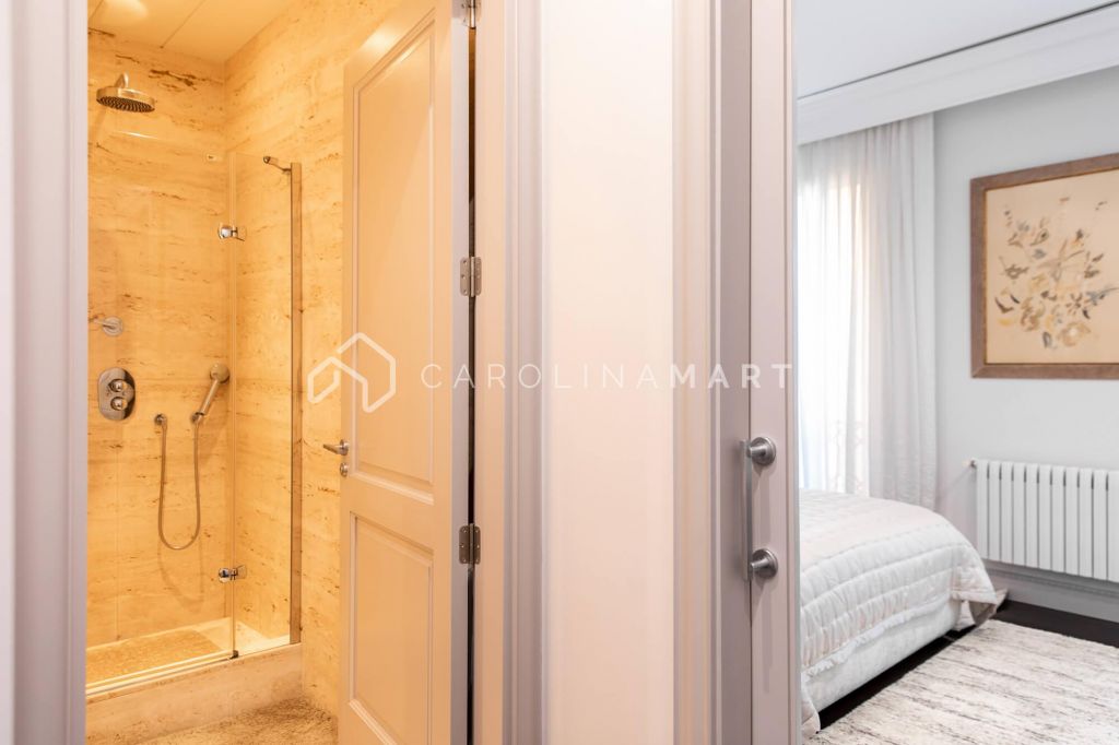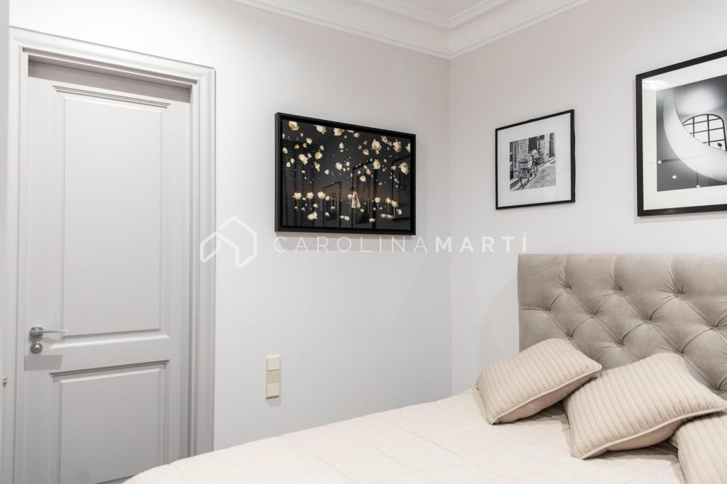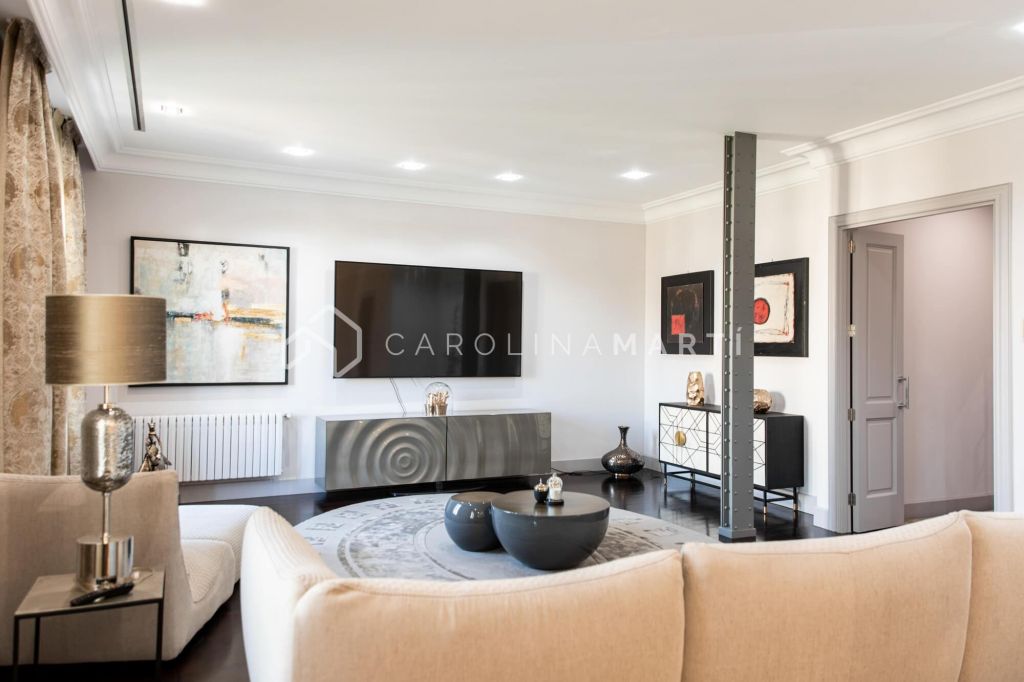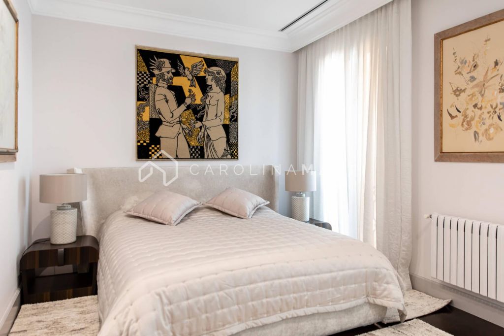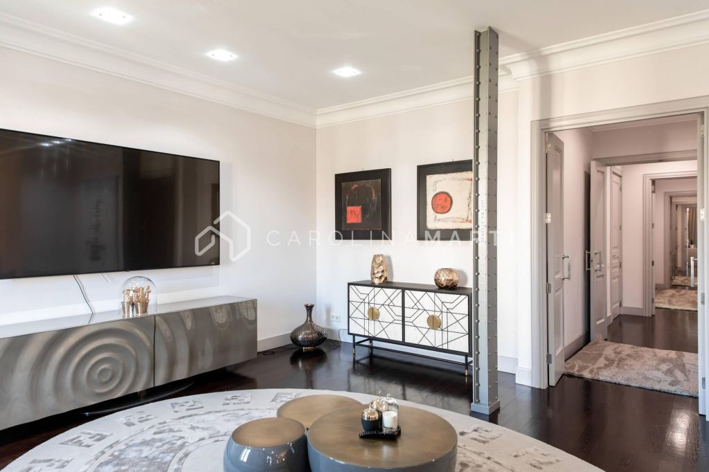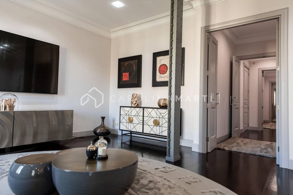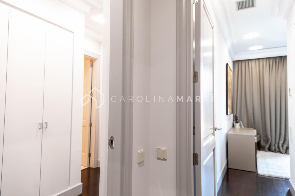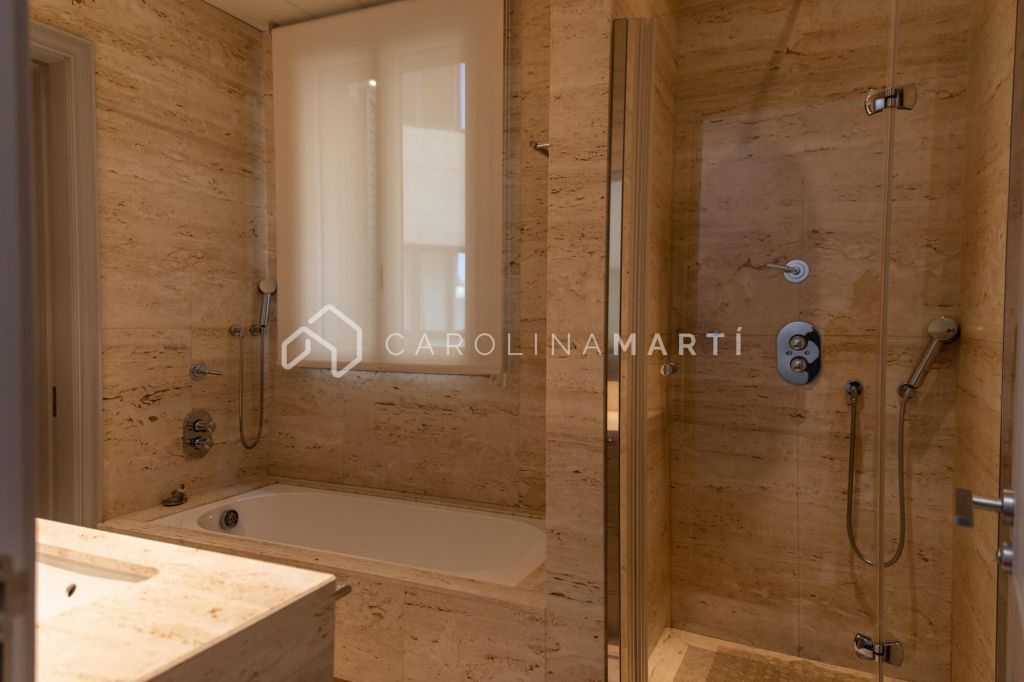 La zone de jour se distingue par un grand salon–salle à manger doté de grandes fenêtres laissant entrer une lumière naturelle abondante, tout en offrant une vue privilégiée sur la célèbre Casa Milà – La Pedrera, chef-d’œuvre de Gaudí. La propriété comprend également une cuisine indépendante entièrement équipée et une chambre de service avec salle de bain privée.