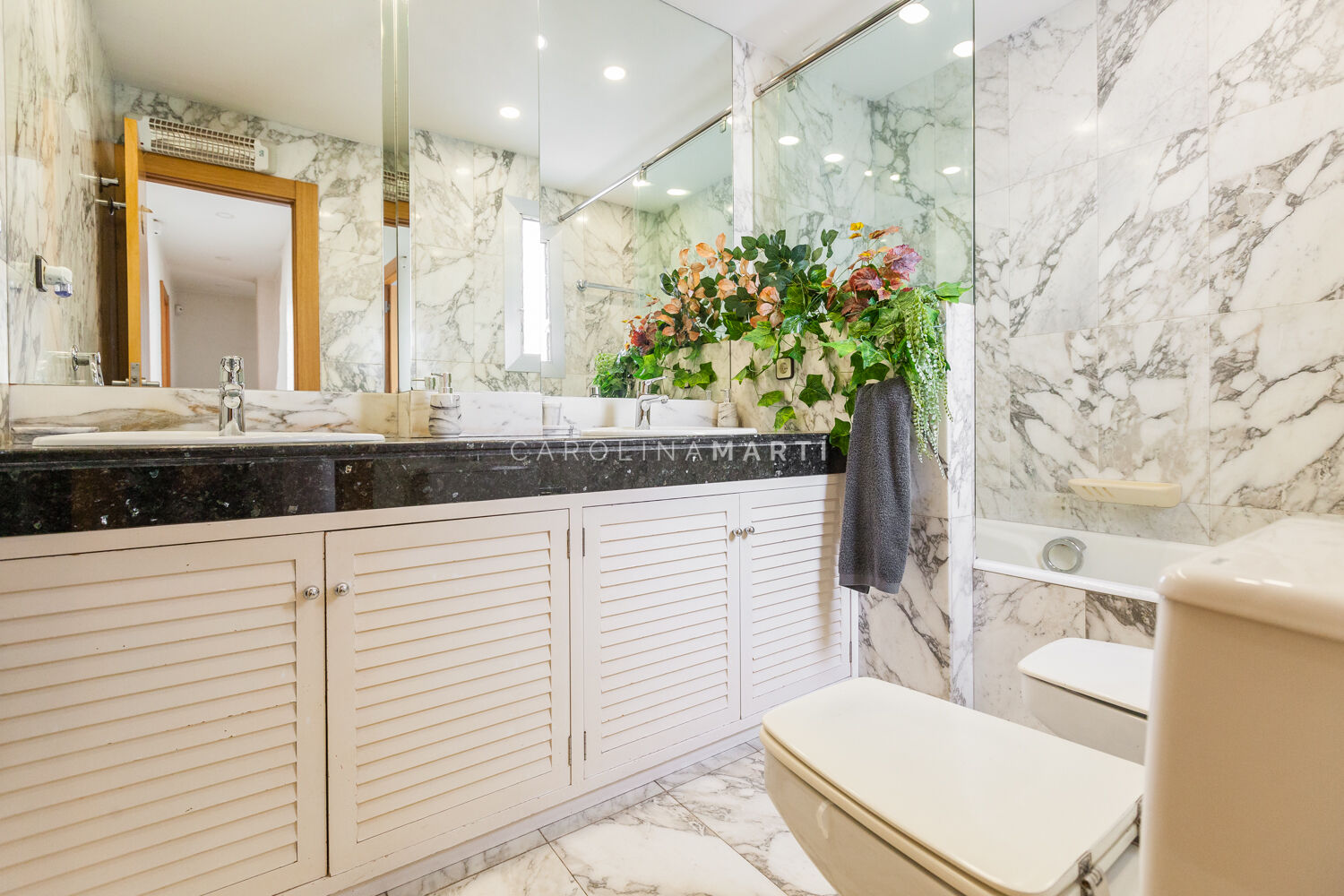 L’un des grands atouts de cette propriété est précisément sa flexibilité : les deux niveaux peuvent être conservés séparés, tels qu’ils se présentent aujourd’hui, ou bien être réunis afin de créer un vaste penthouse duplex avec une distribution adaptée à de nouveaux besoins. S’y ajoutent des prestations telles que la climatisation, le chauffage au gaz naturel, des placards intégrés, des fenêtres en aluminium type Climalit et un ascenseur dans l’immeuble.
