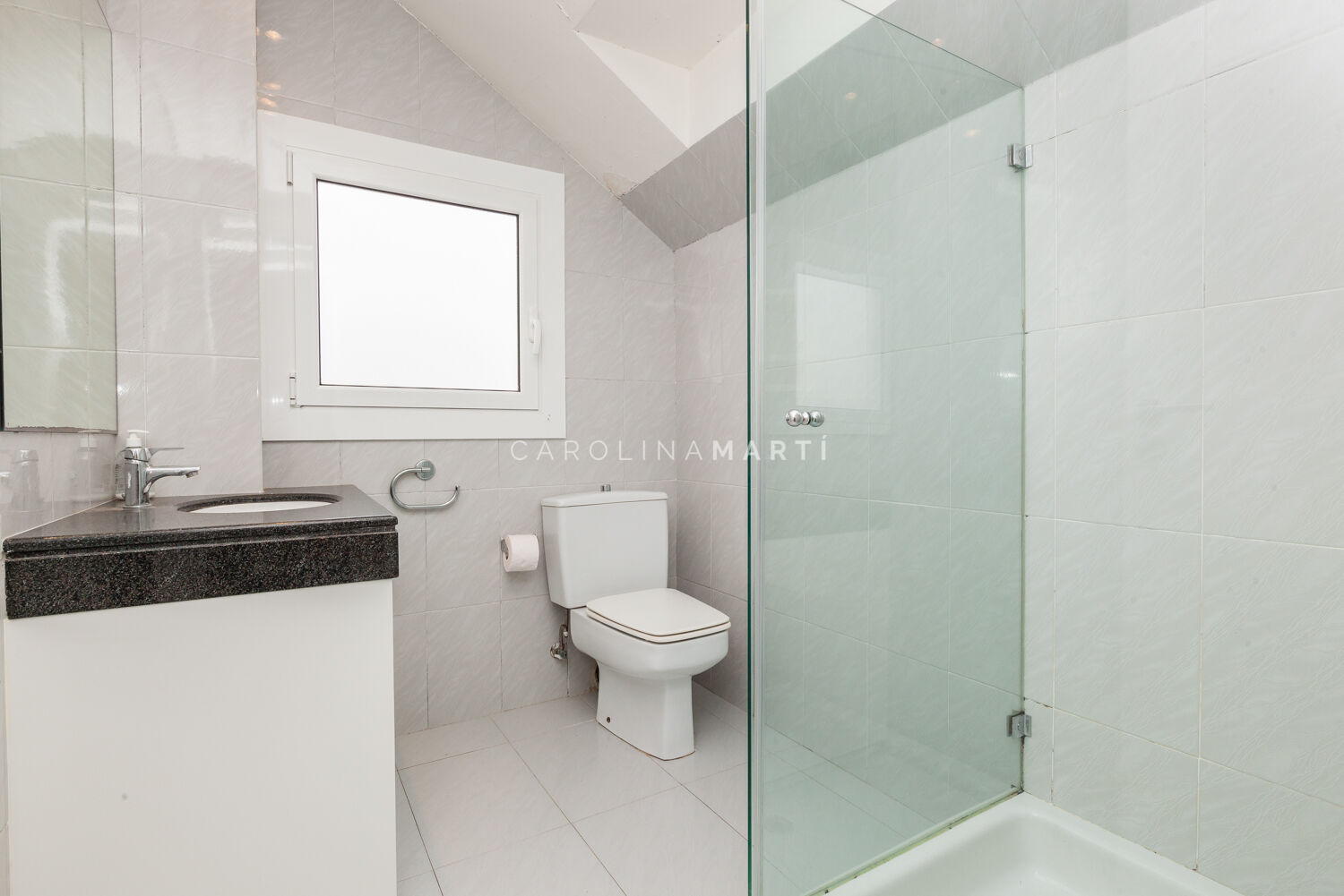 À l’étage supérieur se trouve le sur-atico, actuellement configuré comme un appartement indépendant d’environ 45 m², avec son propre accès depuis le palier de l’escalier. Ce niveau dispose d’un salon-salle à manger avec cuisine ouverte, d’une chambre double extérieure avec vue dégagée et d’une salle de bains complète avec douche. Une configuration particulièrement intéressante pour ceux qui ont besoin d’un espace indépendant pour des membres de la famille, des invités, un bureau ou même pour étudier une éventuelle rentabilité complémentaire.