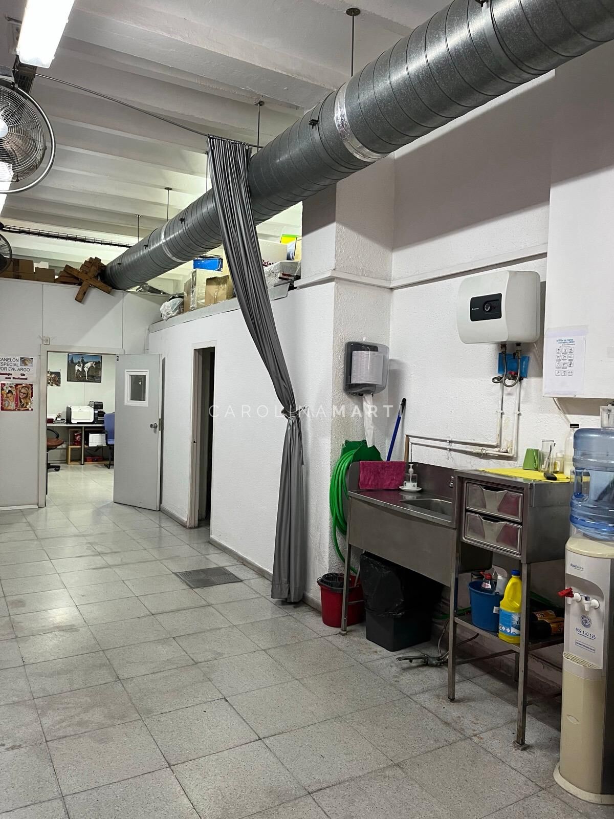 La distribución interior se organiza en varias estancias que incluyen despacho, zona de almacén, cámara refrigerada, aseos y una zona específica para manipulación de productos, equipada con mesas de trabajo y zona de aguas con pedal. El local cuenta además con salida de humos, aire acondicionado, calefacción, sistema de alarma, puerta de seguridad, vado y persiana eléctrica con mando, aportando funcionalidad y comodidad en el día a día.